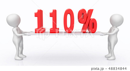 3D figures with 110 percent symbol on a board