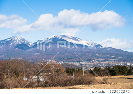 田舎の景色を前景として浅間連峰を望む【長野県】