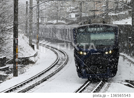 雪の中を走る相鉄12000系電車
