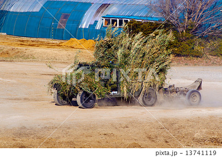 カモフラージュして120mm迫撃砲牽引する重迫牽引車