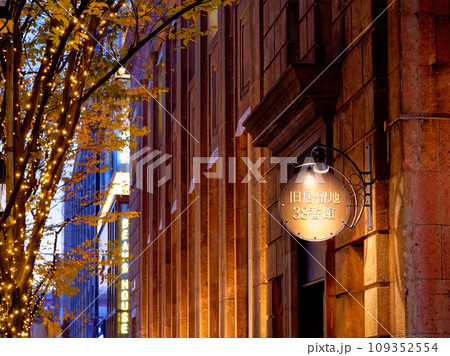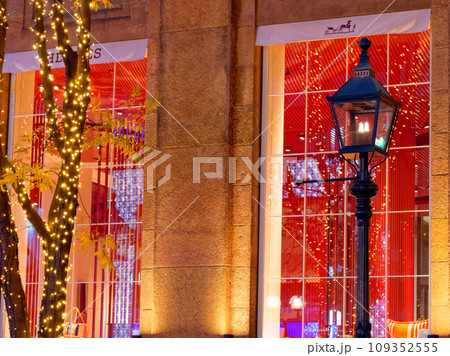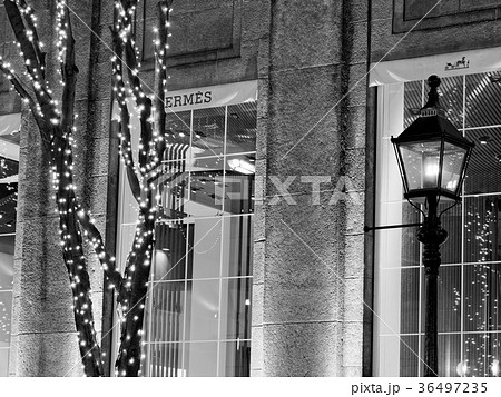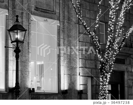 12月の神戸元町 ライトアップされた旧居留地(モノクロ)