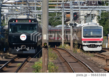 並走する黒い山手線E235系トウ15編成と209系500番台ケヨ34編成京葉線