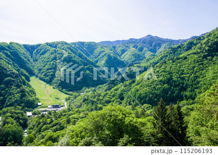 美しい新緑と渓流の風景