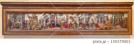 VATICAN CITY, ROME, ITALY - AUGUST 02, 2025 painting by Ercole de' Roberti titled Miracles of st Vincent Ferrer, shows a series of episodes from the saint's life, unfolding like a continuous narrative