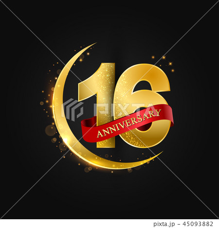 3DCG文字「16th Anniversary/16周年マークキラキラ」ゴールド,金