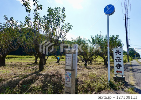 山の辺の道(やまのべのみち) 国道169号線から長岳寺へ誘う看板があるの風景 奈良県天理市