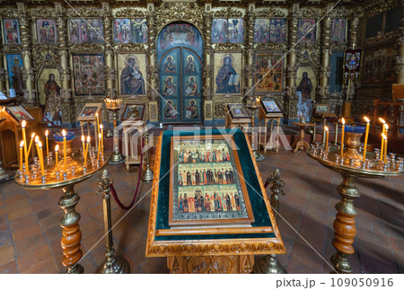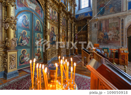 The interior of the Church of the Transfiguration of the Lord and the Praise of the Most Holy Theotokos in the ancient city of Uglich