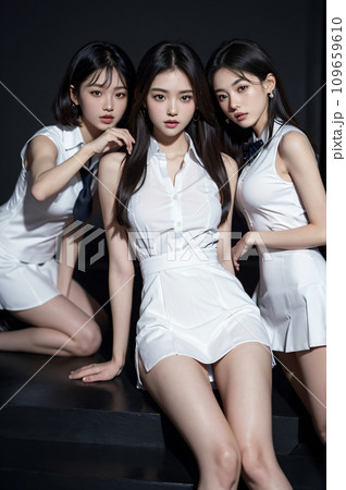 制服姿の女子高生の集合写真 AI画像 AI写真