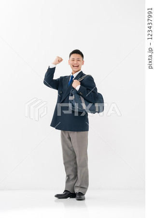 男子 高校生 制服 スクールバック ガッツポーズ