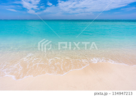 与那覇前浜ビーチの美しい宮古ブルーと夏雲