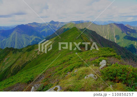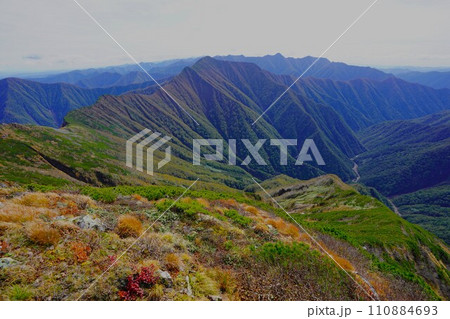 ペテガリ岳登山道稜線からの1839峰とシビチャリ山