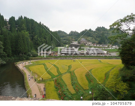 熊本県石造りアーチ橋「通潤橋」傍の稲穂