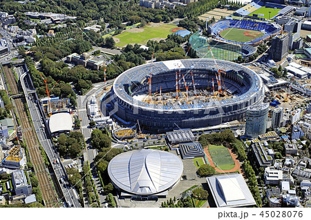 神宮の杜周辺上空/Aerial view、新国立競技場建設中、2018/10月撮影