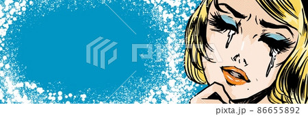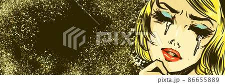 1960年代風アメコミ涙を流すブランド美女と吹き出しのイラスト