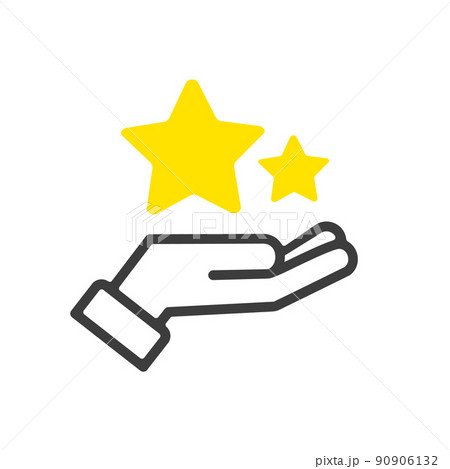 黄色の2つ星を持っている人の手のイラスト - 評価・口コミ・レビューのイメージ素材
