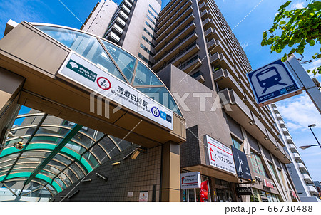 日本の東京都市景観 清澄白河駅(出入口)などを望む