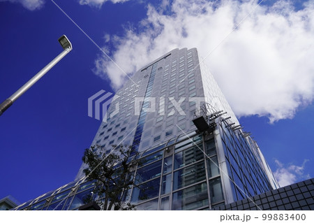大阪 豊中市 千里中央 そびえる高層ビル(千里ライフサイエンスセンター)(陸橋から、晩冬)