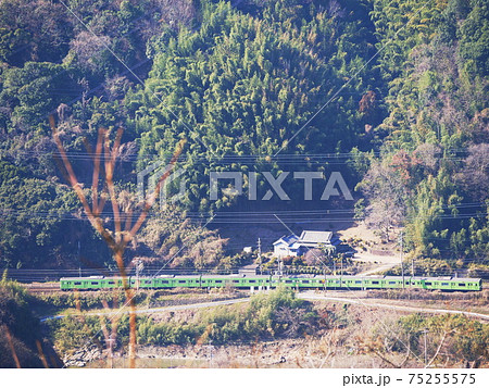 奈良県 王寺町 明神山から望む亀の瀬のJR関西本線 (生駒山地、立春)