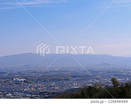 奈良県 王寺町 明神山から望む信貴山、生駒山 (信貴生駒山系、立春)
