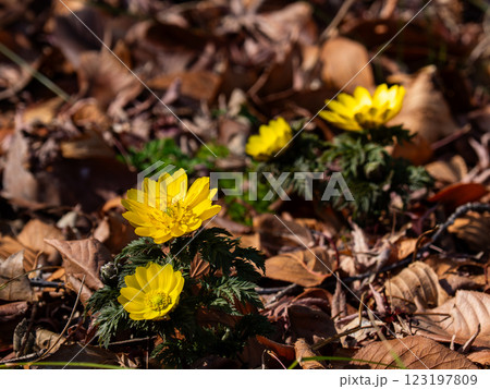 早春の野原に咲くフクジュソウ 花2月フクジュソウ福寿草29H4.3