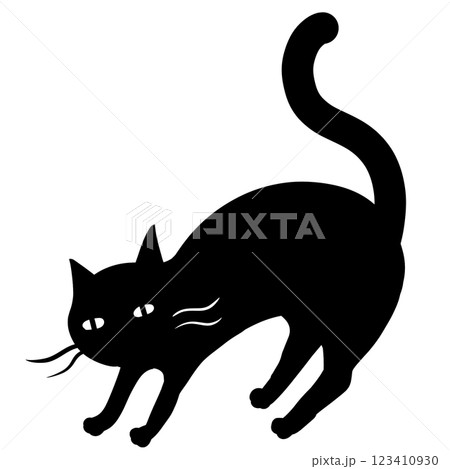 黒い振り返る可愛い猫のシルエット