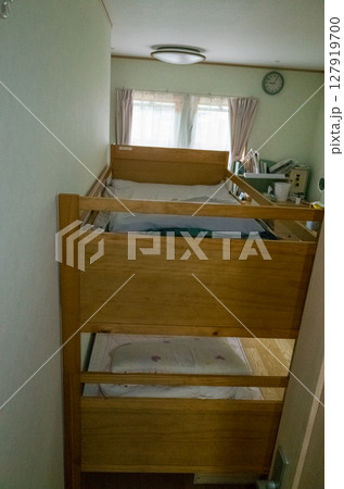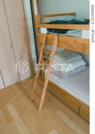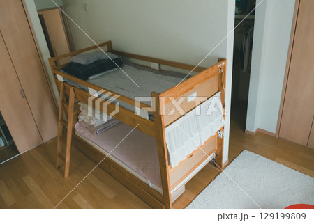 modern baby bedroom with crib and bunk bed empty no people children room interior flat horizontal