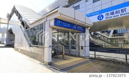 東京・豊洲市場の最寄り駅、ゆりかもめの市場前駅の駅舎と2A出口