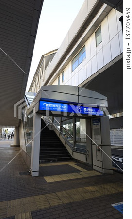 東京・豊洲市場の最寄り駅、ゆりかもめの市場前駅2A出口、エスカレーターが設置