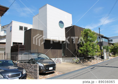角地に佇むキューブ型の落ち着いた雰囲気の瀟洒な美しい戸建て住宅