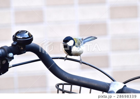 東京都三鷹市の野鳥 三鷹市中原自転車にとまるシジュウカラ