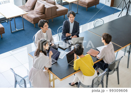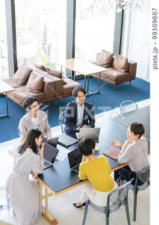 ビジネスシーン ミーティング 男女 俯瞰
