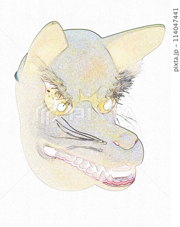 稲荷の神の使い神通力を与えるお狐のきつね面 モノクロ1