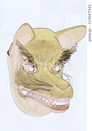 稲荷の神の使い神通力を与えるお狐のきつね面イラスト14