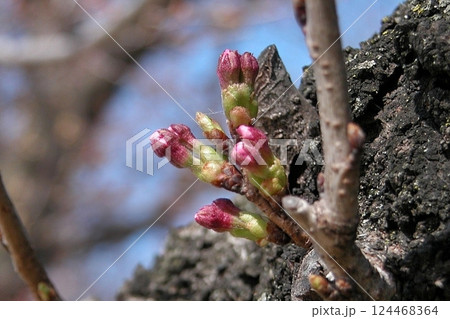 伊勢町ふれあい公園で桜の蕾が まもなく開花(2015.3.27) 紅色 桜手帖 接写 埼玉県熊谷市