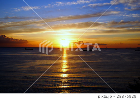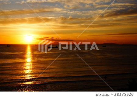 伊豆半島 朝焼け 伊豆大島 白浜・大浜海水浴場 静岡県 下田市