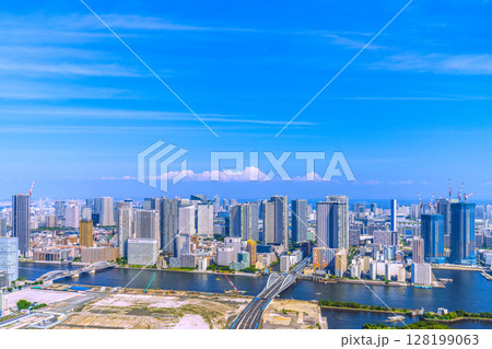 日本の東京都市景観 7月。新時代へ。築地市場跡地などを望む。再開発へ…=4日