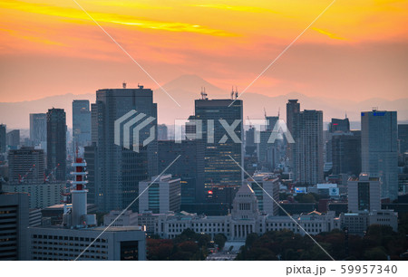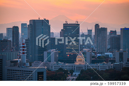 日本の東京都市景観 霞が関の官庁街などを望む(奥に富士山)=2019年11月10日撮影