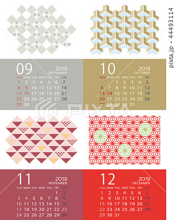 2019年9月〜12月 和柄のカレンダー 日本向け(祝日表記)
