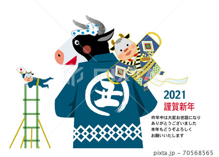 2021 年賀状 デザイン 表彰式 丑年 イラスト