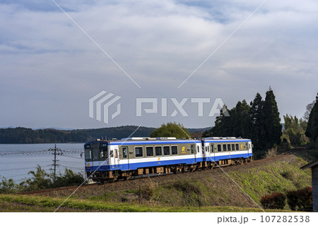 七尾湾と能登島を眺めながら走るのと鉄道の列車