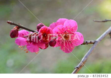 京都市北野天満宮梅苑の可憐な紅梅