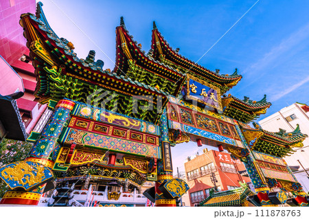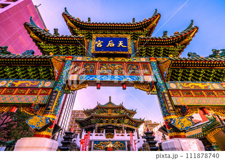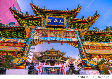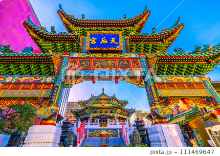 日本の横浜都市景観 2月。横浜中華街・横濱媽祖廟などを望む…新時代へ=8日