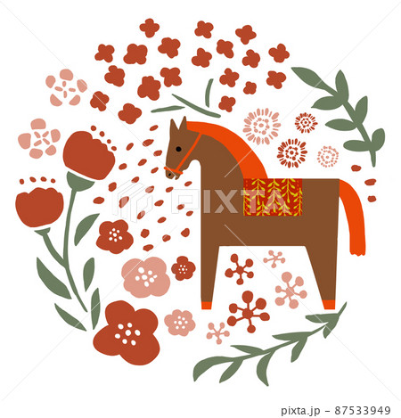 馬のスタンプ風イラスト(丸) 「うま」の文字入り 年賀状素材