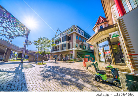 日本の横浜都市景観 横浜市営地下鉄 中川駅(副名称・東京都市大横浜キャンパス前)出入口前などを望む