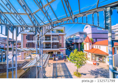 日本の横浜都市景観 横浜市営地下鉄 中川駅(東京都市大横浜キャンパス前)前や中川駅前郵便局などを望む