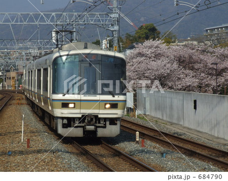 鉄道 列車 山陰本線 京都口 221系 桜 さくら 春 亀岡市 ローカル