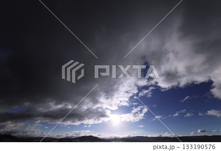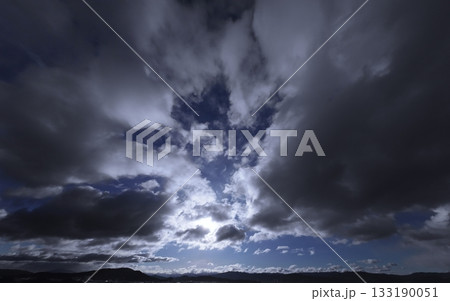 光芒が現れた神秘的な夜明け空・冬・超広角・空主体・240226am