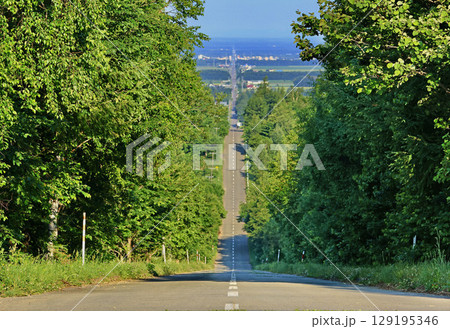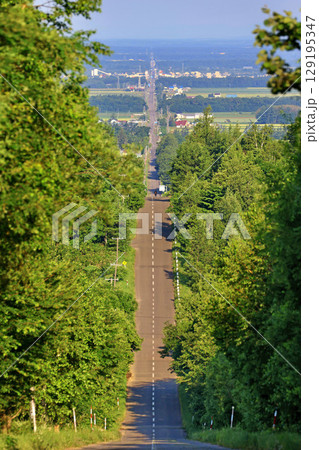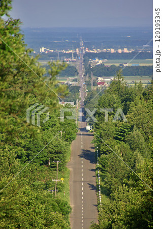 天に続く道。北海道斜里町と小清水町を結ぶ全長約28キロメートルの直線道路の景観。
