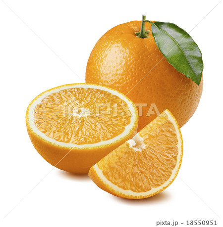 Whole orange leaf, half, quarter piece isolated