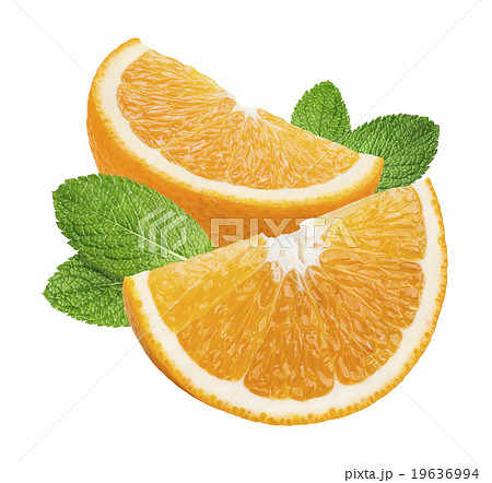 Orange quarter pieces mint leaves isolated